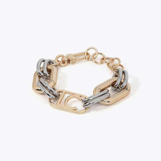 PULSERA ESLABONES BICOLOR LOGO OVALADO