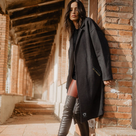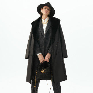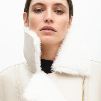 ABRIGO REVERSIBLE EFECTO PIEL Y PELO NEGRO