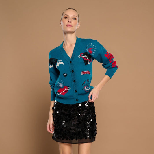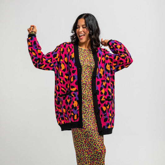 Cárdigan Large De Estampado Animal Fuscia - I'm Felina