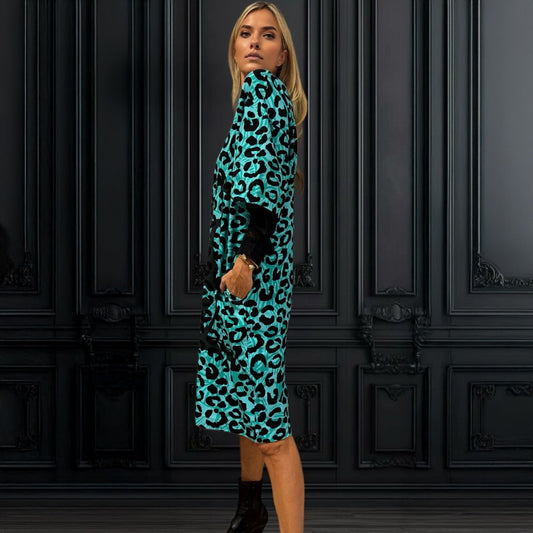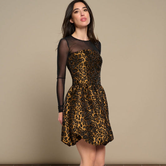 Vestido Tubo De Tul Cuello Chimenea De Estampado De Estrellas Con Animal Print - Shiny Girl