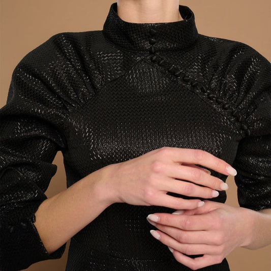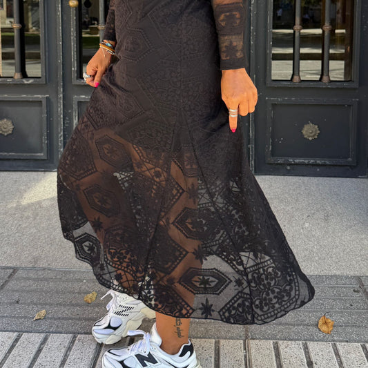 Vestido Punto Tejido Negro Con Rayo - Let's Dance
