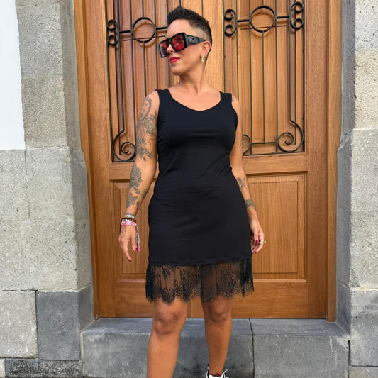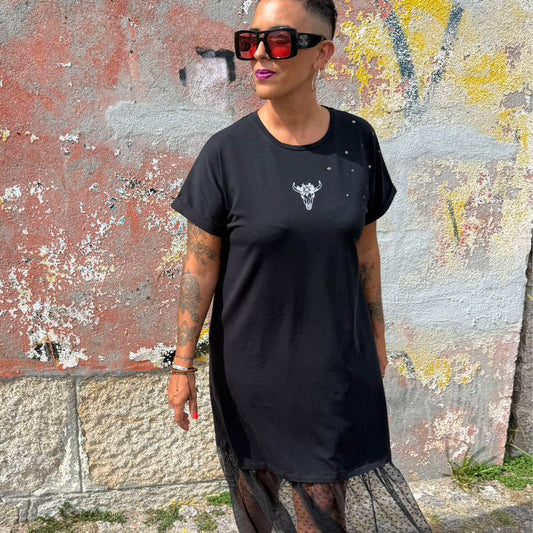 Vestido Mini Vuelo Canalé Negro Con Rayo Y Ojo - Let's Dance