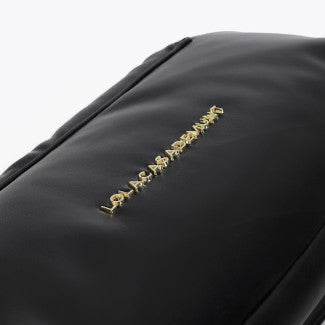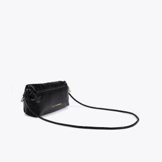 Bandolera acolchada en efecto piel elegante con tachas redondas doradas. Cierre magnético y correa ajustable para mayor comodidad. Logotipo metalizado en parte trasera con un acabado impecable para un estilo moderno y sofisticado.