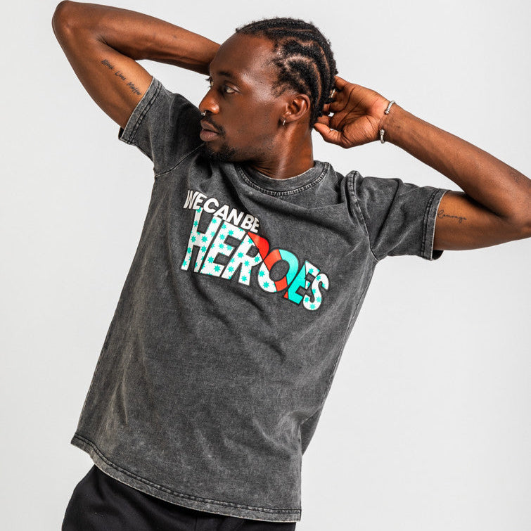 We can be Heroes: juntas lo somos. - Camiseta Unisex de algodón efecto desgastado: Camiseta UNISEX de corte recto, cuello redondo y manga corta con sisa. - 100% Algodón. - Lavar a máquina en agua fría. No usar blanqueador. No usar secadora. Secar colgado a la sombra. Planchado a temperatura baja, por debajo de 100 ºC. Planchar del revés. No dejar la plancha parada sobre la prenda. Lavar con colores similares