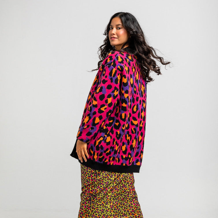 Cárdigan Large De Estampado Animal Fuscia - I'm Felina