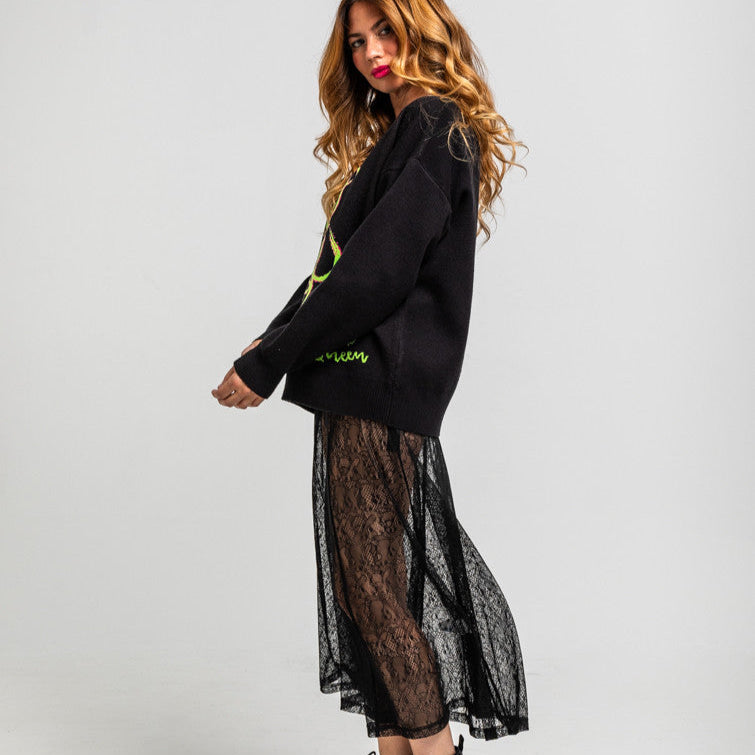 Falda Midi Vuelo Encaje Negro - I'm The Queen