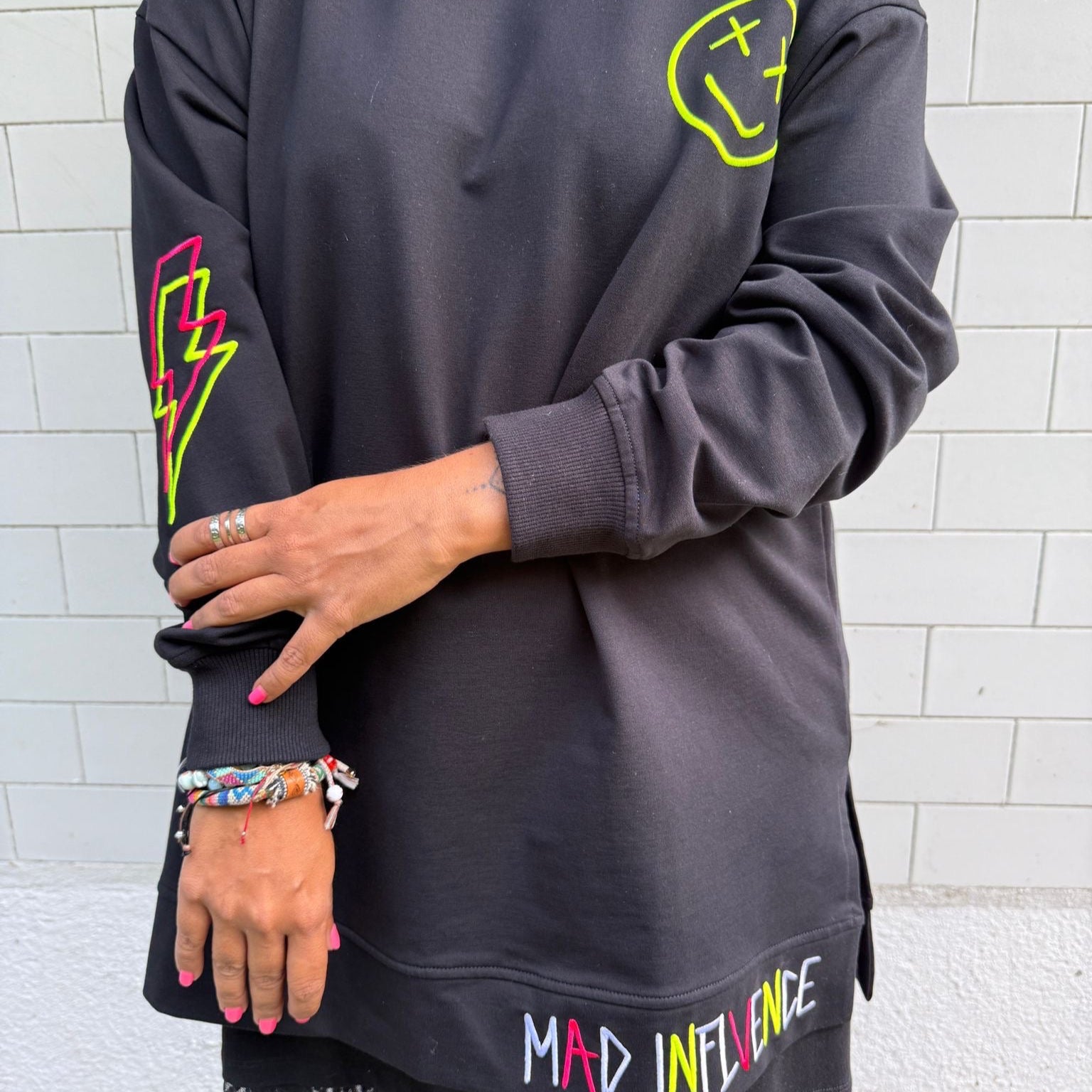 Sudadera larga, con aberturas laterales y detalles en bordado