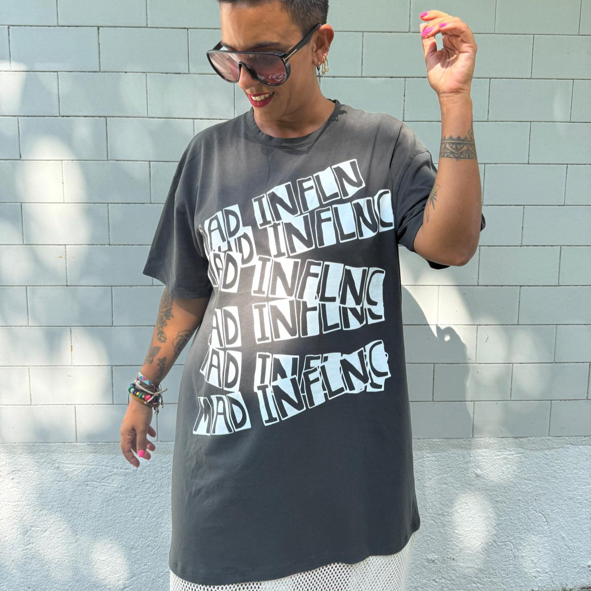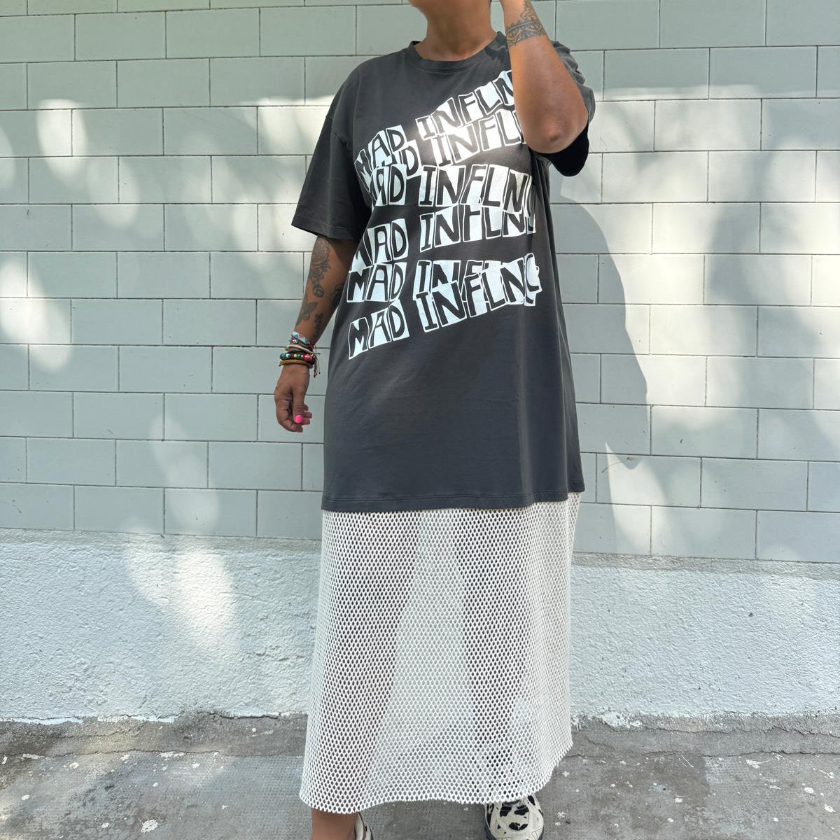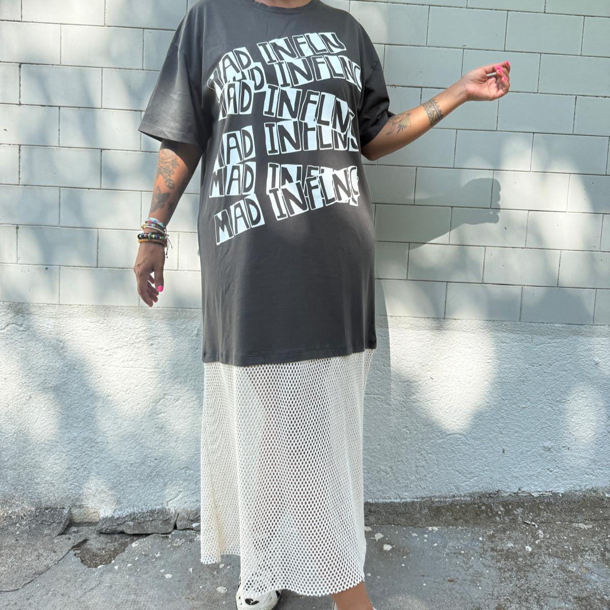 Vestido algodón over con parte de abajo con rejilla
